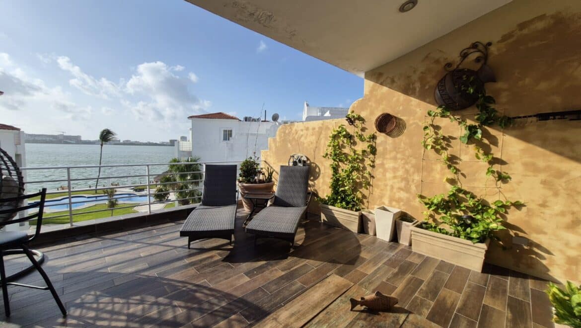 Experience the best of waterfront living with this elegant two-level penthouse located in the exclusive Pok Ta Pok golf course community. With 145.56 m² of total space, this residence combines comfort, functionality, and a privileged location overlooking Nichupté Lagoon and Cancún’s iconic hotel zone.