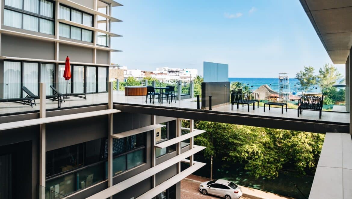 The building is located approximately 100 meters or 328 feet from the Caribbean Sea and just a short walk from Fifth Avenue, placing beach clubs, restaurants, and entertainment within easy reach.