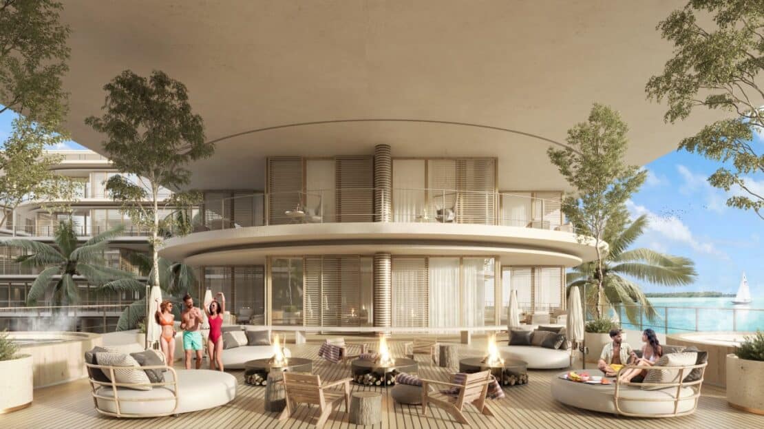 Each three-bedroom penthouse is crafted as a private luxury suite, ensuring comfort and privacy for all residents. The primary suite features a sprawling walk-in closet and a spa-like en-suite bathroom with dual vanities, a freestanding tub, and a separate glass-enclosed shower, all overlooking the sea. The additional bedrooms are similarly well-appointed, each with their own en-suite facilities and premium amenities, perfect for family or guests.