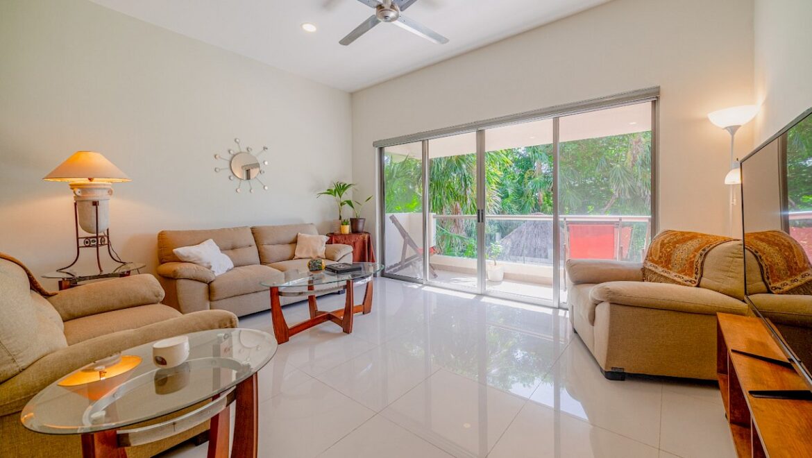 Located inside the gated marina community of Puerto Aventuras, this well-maintained two-bedroom condo offers generous interior space, peaceful golf course surroundings, and the convenience of a move-in-ready residence. Positioned within a boutique building with only ten residences, the property combines privacy, comfort, and strong long-term value in one of the most secure communities in the Riviera Maya.