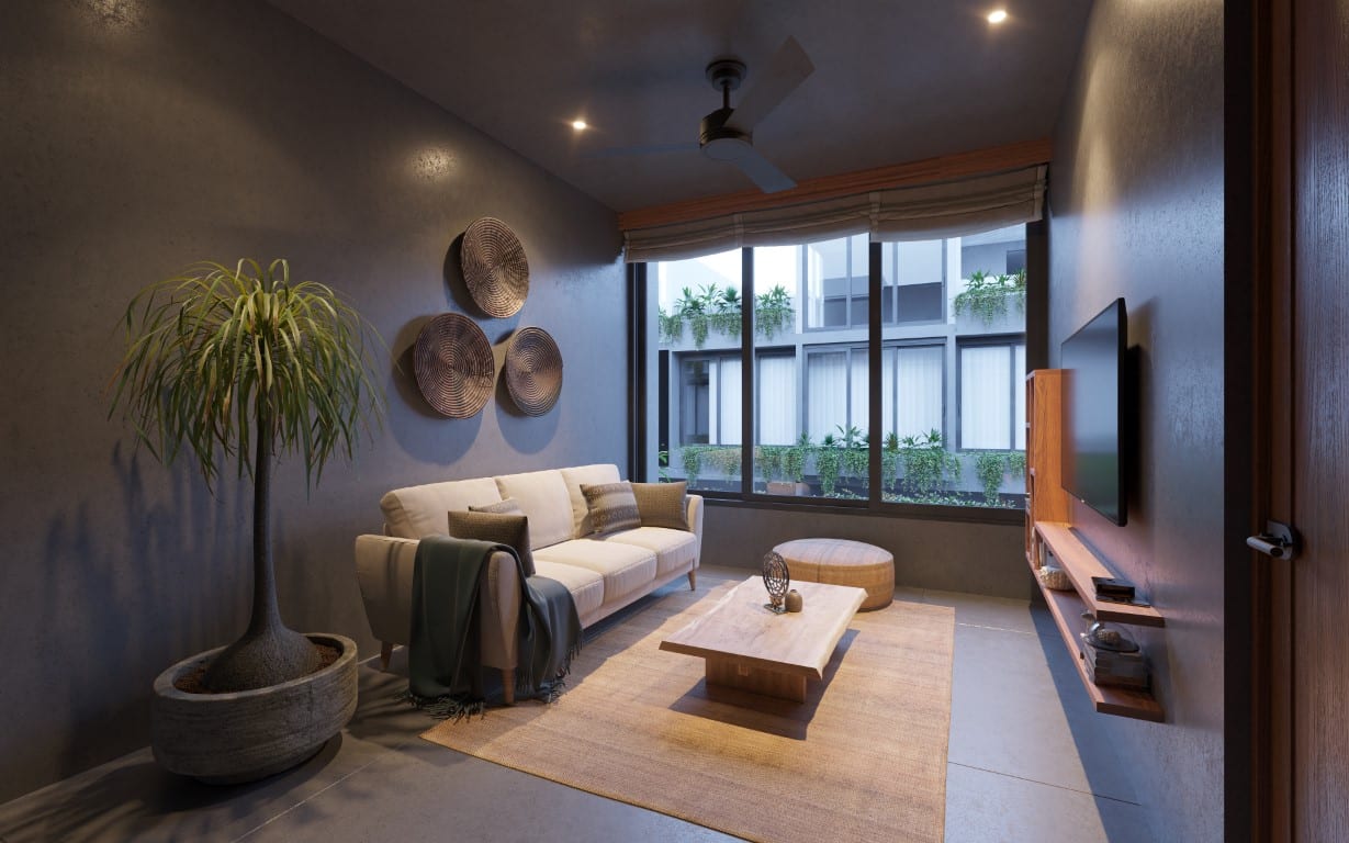 Kateen is committed to a sober and elegant design that contrasts the artisanal textures of Tulum with modern industrial finishes, utilizing high-quality materials and native wood species for a mixed natural appearance. Natural vegetation and warm lighting are integrated with concrete, brown, and black undertones to enhance a sense of calm and serenity.