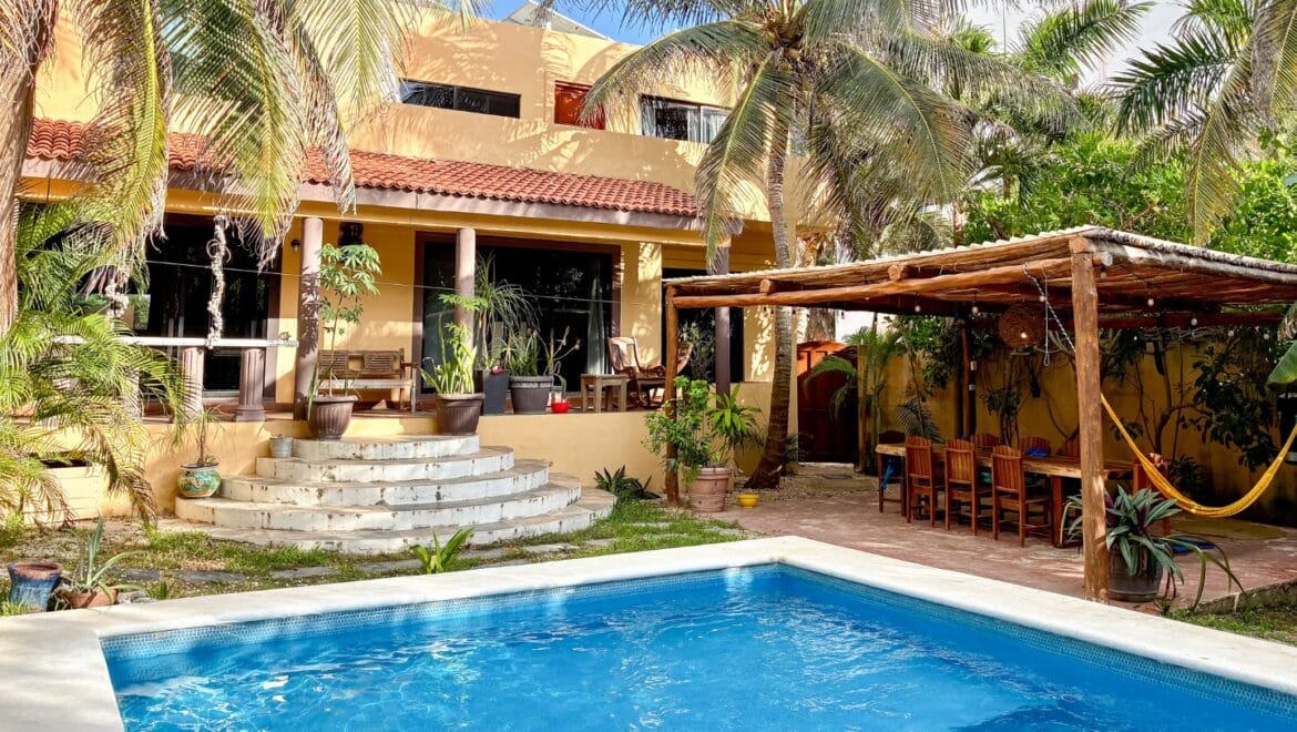 A short walk from the Caribbean shoreline, this second-row property combines direct beach access with a flexible layout designed for both personal use and income generation. Surrounded by mature tropical landscaping, the setting feels private and established, while still placing you within one of the Riviera Maya’s most desirable coastal areas.