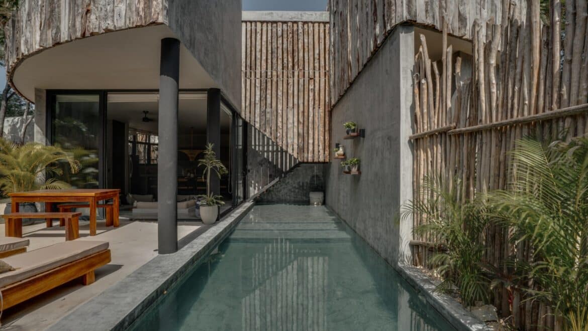 Surrounded by dense jungle just minutes from the heart of Tulum, this three-bedroom residence offers a thoughtful balance between contemporary design and a natural setting that defines the area. Set within a gated community with 24-hour security, the arrival experience is intentionally quiet, with a short walk through greenery leading to a private entrance that immediately separates the home from its surroundings.
