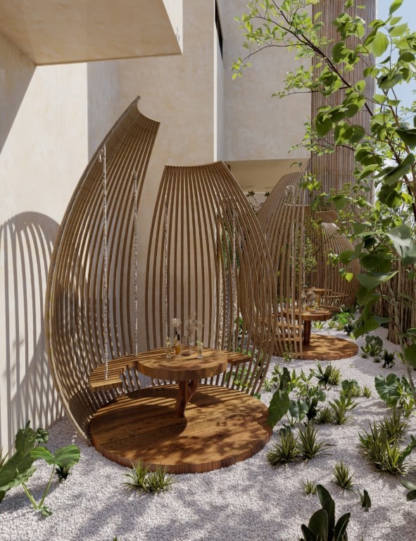 As part of the Ka’an Ku’Ja community, you’ll have access to an array of world-class amenities, including a serene infinity pool, a gym for your daily workout routine, and a restaurant where you can enjoy gourmet meals with a view of the jungle. The unique ‘nest’ lounging areas allow you to relax in elevated spaces, feeling the wind on your face as you unwind. Spend your evenings by the fire pit, reconnecting with nature and those around you.