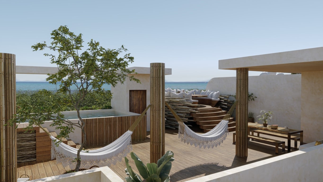 Nestled in the heart of Tulum, the 3-bedroom condos at Ka’an Ku’Ja offer a seamless blend of modern luxury and natural serenity. These spacious units are designed to evoke a deep connection with the surrounding jungle and the Caribbean Sea. Imagine waking up each morning to the sound of nature, walking through lush greenery as you step out onto your private terrace. Each 3-bedroom condo is thoughtfully crafted, drawing inspiration from the four elements, inviting you to immerse yourself in nature and rediscover your inner peace.